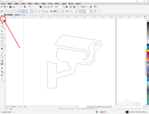 点击【钢笔东西】,在作图区域绘制一个监控摄像头大致轮廓的多边图案。点击【卵形东西】,绘制出一个圆形图案,暗示监控器镜头(如图所示);