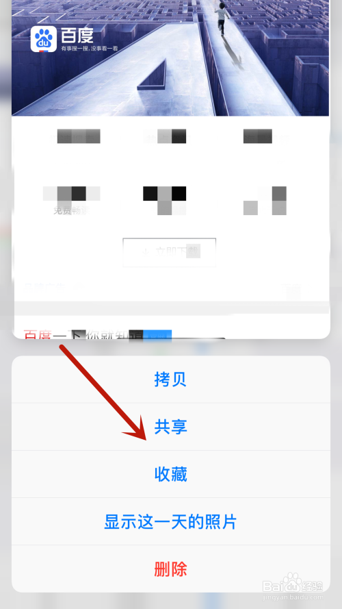 首先可以打开相册,然后随意找到一张图片,然后用力长按将相片标的目的上拉动,然后就可以进行【拷贝、分享、保藏】
