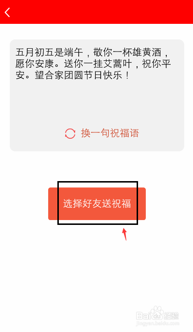进入页面,可以看到要群发的祝福语,再点击【选择老友送祝福】。