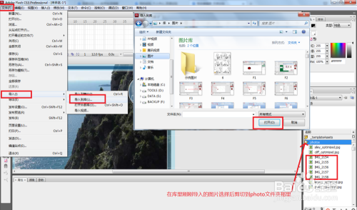 第三,先把要建造的相片同一编纂当作宽和高的比例为640x480,然后点击文件——导入——导入到库——然后再在库里方才导入的图片选择后剪切到photo文件夹那边。