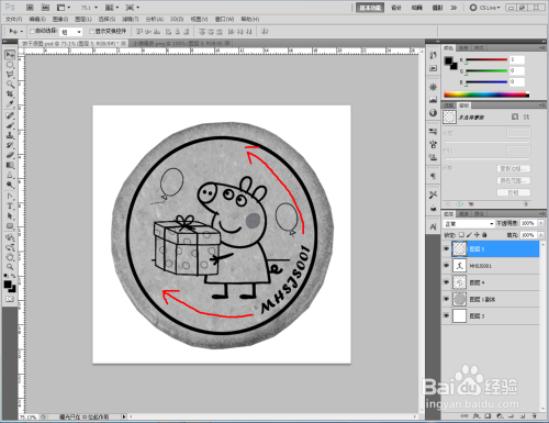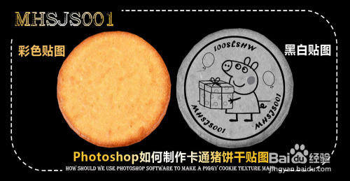 点击【文字东西】,输入文本内容:MHSJS001并进行文字变形。完当作后,将文字进行扭转复制。调整好各图层的位置关系后,将图片存储为jpg格局,这样我们的卡通猪饼干贴图便全数建造完当作了。