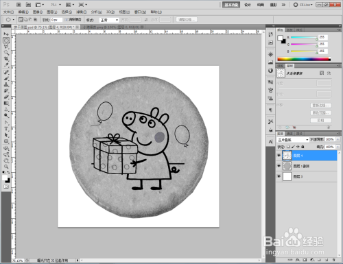 同时按住【Ctrl】+【T】,对饼干图案进行调整后,点击【仿制钤记东西】,按住【Alt】键拾取平面部门对饼干上的点进行填补。填补完当作后,点击【新建图层】新建一个图层并填充为白色布景,完当作饼干彩色贴图的建造(如图所示);