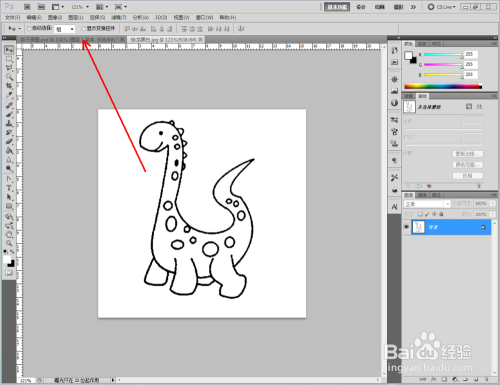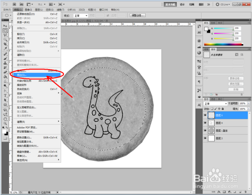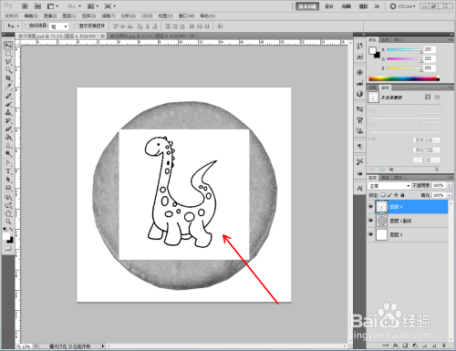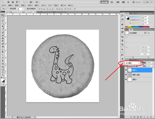 点击【图像】-【调整】-【去色】,将彩色图转换为口角图。将找好的恐龙口角图拉进作图区域,并将模式更改为【正片叠底】(如图所示);