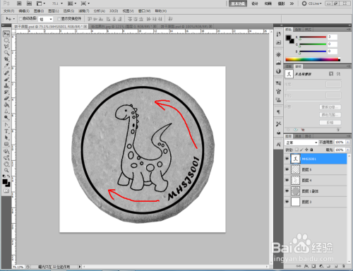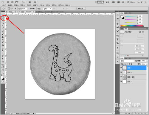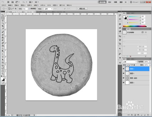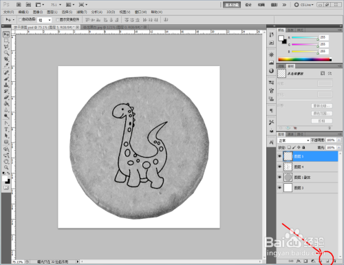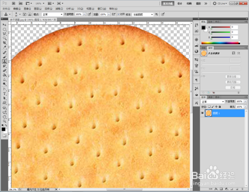 同时按住【Ctrl】+【T】,对饼干图案进行调整后,点击【仿制钤记东西】,按住【Alt】键拾取平面部门对饼干上的点进行填补。填补完当作后,点击【新建图层】新建一个图层并填充为白色布景,完当作饼干彩色贴图的建造(如图所示);