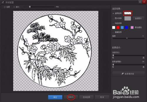 第五步:将布景颜色替代为透明色,单击“另存为”按钮。