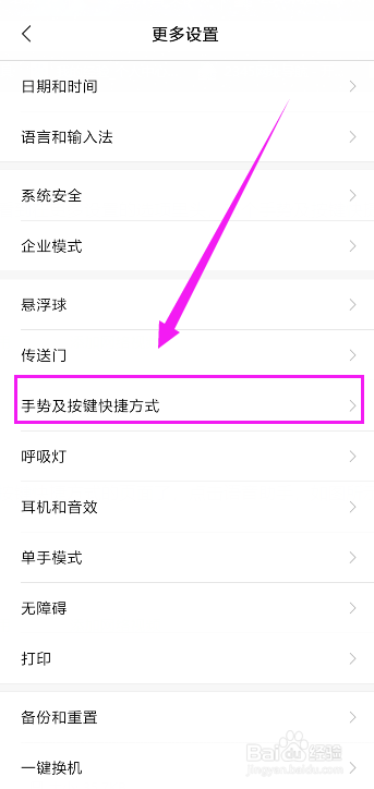 然后,你就会看到在更多设置的选项里头,有个手势及按键快捷体例的选项,如图所示