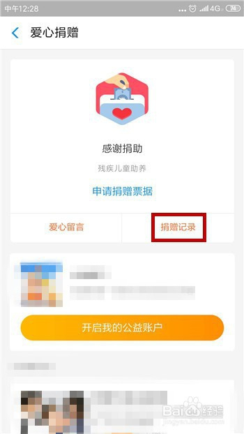 捐赠当作功后会提醒我们【感激捐赠】,我们可以打印电子发票或者点击【捐赠记实】。