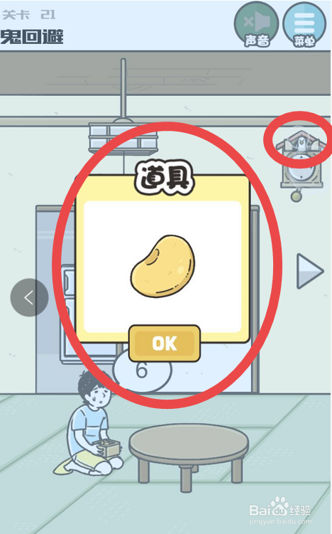 之后可以在页面的右上角看见有一个挂钟,点击挂钟的表盘然后直到表盘呈现整点的环境,当整点的时辰点击挂钟上面的小门,之后小门就会打开然后会看见里面的小鸟,而且可以发现小鸟头上也有一个黄色的豆子,点击就可以收成第五只豆子了。