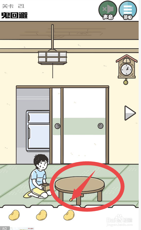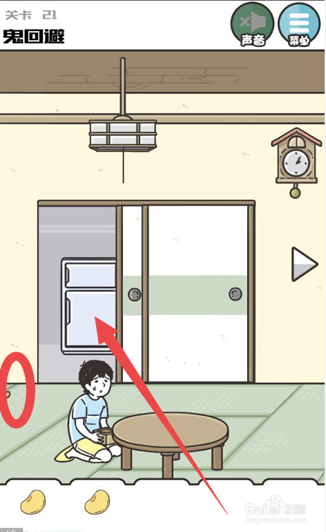 之后回到左侧的页面然后将所有的豆子都放在游戏人物拿着的盒子里,之后点击后面的门,将鬼放进来,之后游戏人物就会将豆子洒标的目的鬼,鬼害怕这些豆子就会分开了,这样就完当作了神回避3手游第二十一关的挑战了。