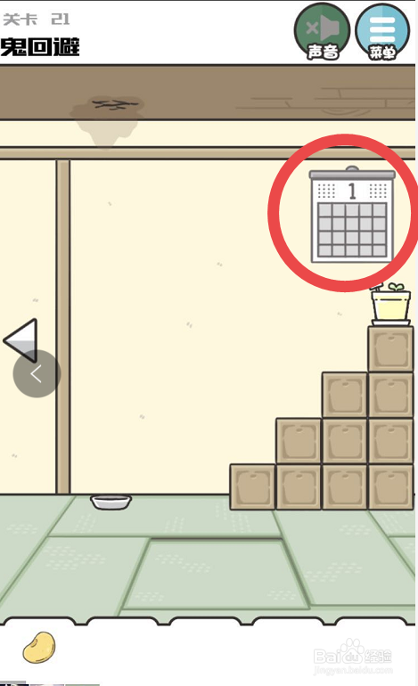 可以看见布景中的门的左侧夹着一只黄色的豆子,首先点击门然后门就会标的目的右滑动,之后豆子就会失落落在地上,点击就可以收成第三只黄色豆子了