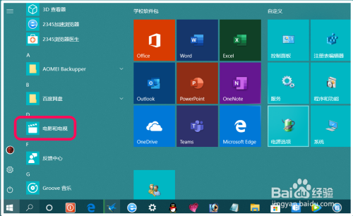 点击系统桌面左下角的【起头】,在开始菜单中找到需要封闭应用权限中后台应用的程序。如:片子和电视;