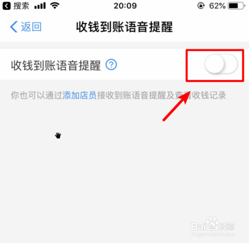 点击后我们将页面收钱到账语音提醒后方的开关打开,即可开启语音提醒。