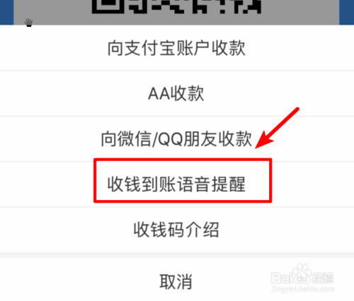 点击后鄙人方弹出的选项内,点击收钱到账语音提醒的选项进入。