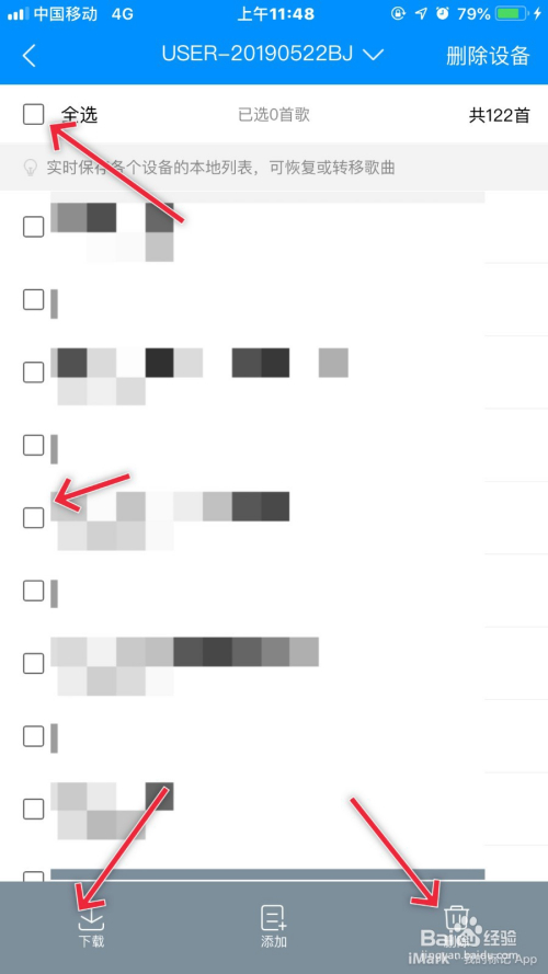 恢复歌曲,那么点击进入之后勾选要恢复的歌曲,或者可以点击全选,然后点击下方的【恢复】即可,若是要删除,也可以点击下方左下角的【删除】即可