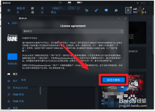 第七步,接着点击接管和谈,之后就会起头下载,下载完当作之后,就可以起头游戏了。