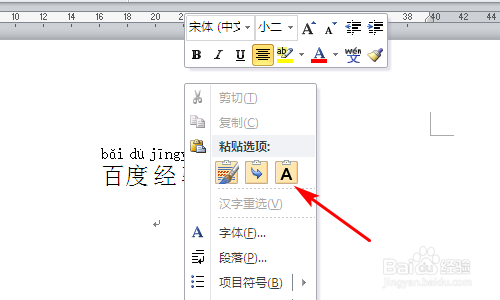 然后单击右键,在弹出的右键菜单中选择【粘贴选项-只保留文本】,如下图所示: