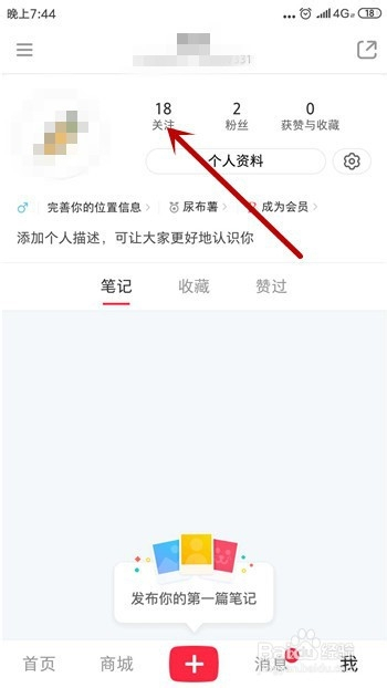 在小红书的小我界面可看到顶部的【存眷数】,点击下这个存眷数。