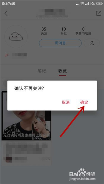 点击后会提醒我们是否确定打消存眷,点击【打消】按钮。