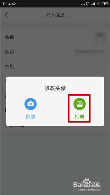我们需要选择改换头像的照片体例,可所以摄影或者选择相册里的照片。