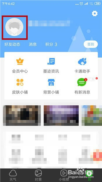点击后会打开墨迹气候的小我本家儿页,再次点击顶部的账号头像。