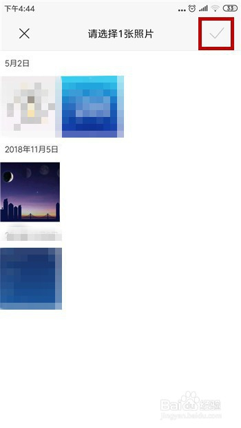 然后还需要在图片的区域中选择一块区域作为头像,点击右上角的【√】。