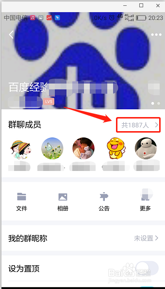 进入QQ群设置页面,找到“群聊人员”,点击后面的人数按钮。