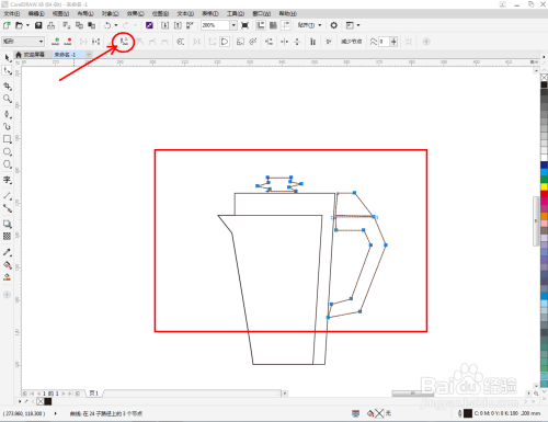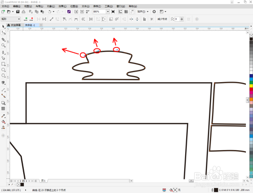 点击【外形东西】,选中图案上所有节点后,点击【转化为曲线】,按图示对图案上的节制点进行调整,完当作图案的光滑优化处置(如图所示);