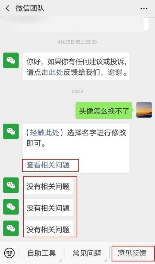 若是其实等不了,的可以标的目的微信团队反馈,输入”头像怎么换不了“,可是没有相关问题可以点击”定见反馈.“