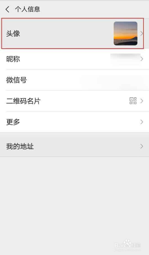 打开微信点击”我“,然后点击”头像“进入小我信息后,点击”头像“,
