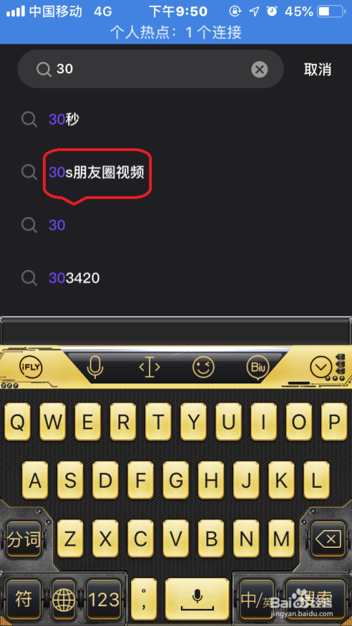 在搜索框内输入30 或30s,主动弹出30 秒朋友圈视频,点击进入即可。