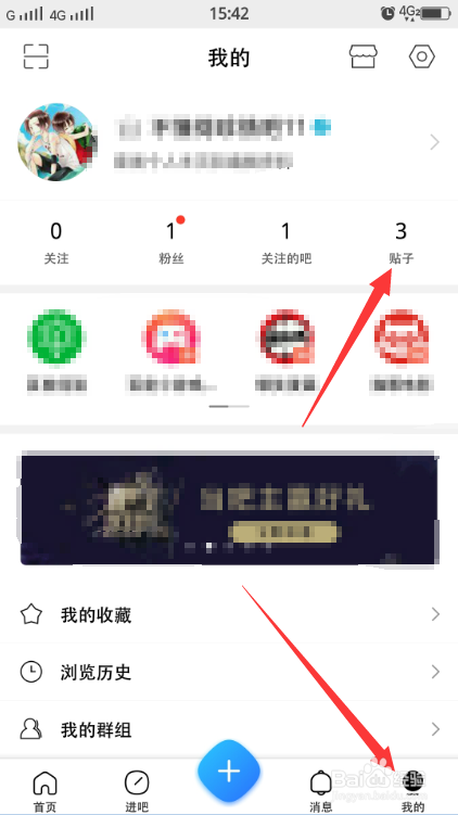 需要删除或查看帖子,可以来到我的,点击帖子。