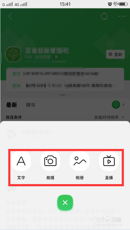 选择发帖内容为文字、图片或直播。