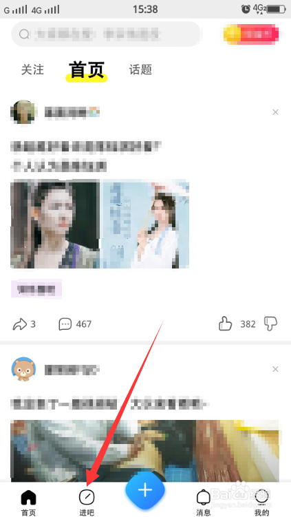 手机上打开百度贴吧APP到首页。