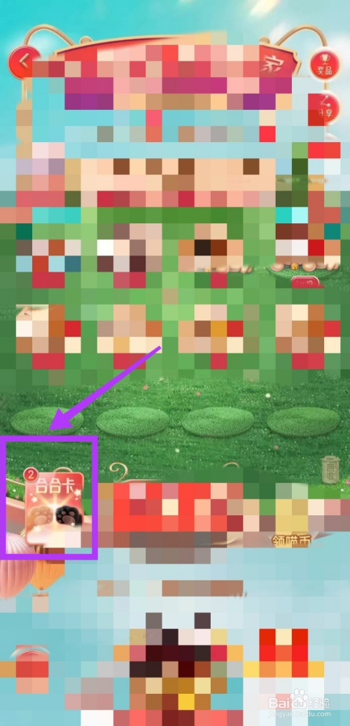 进入合猫猫界面后,箭头处可以看到当前拥有1张合合卡,点击后即可进入合合卡界面。