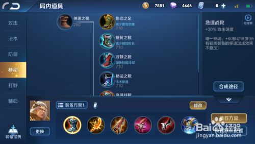 那么我们后羿的装备怎么出呢?第一件装备保举大师可以出攻速鞋,增添后羿的进犯速度。