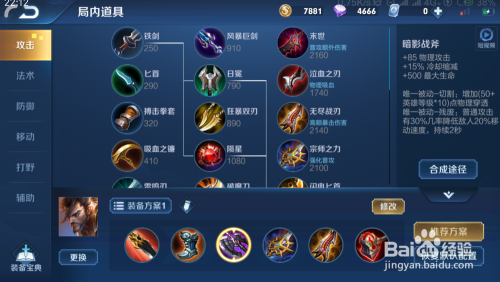第一件装备保举大师可以出打野刀,让宫本走大野的路线。
