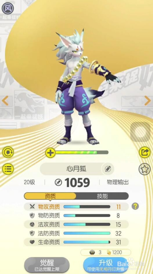 然后我们将心宿星进级到20级就可以进行醒觉了,大师就可以获得心月狐了,可是是随机获得的哦。