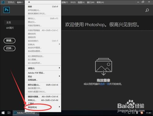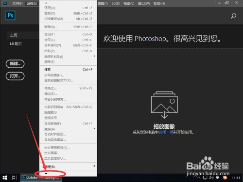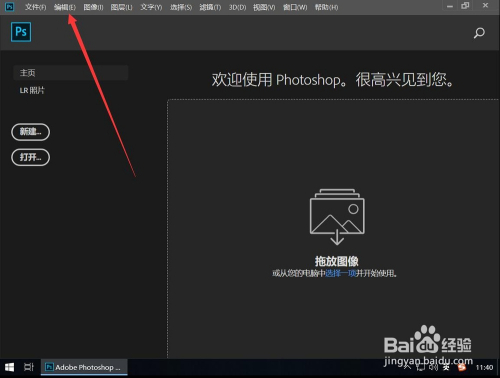 打开PS后,点击软件顶部东西栏上的“编纂”