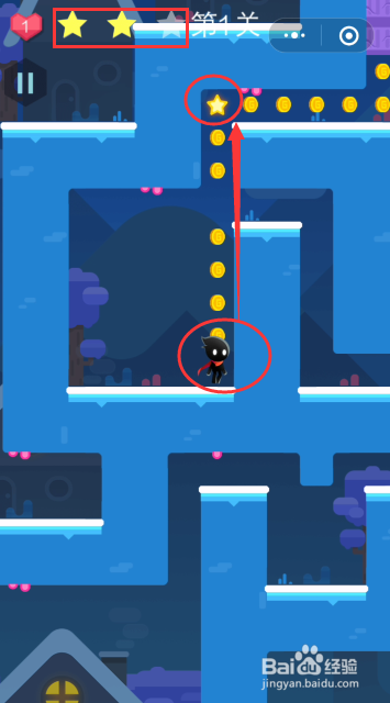 按照金币位置,点击屏幕,上下摆布移动,去碰触这些金币,就可以收集它们。