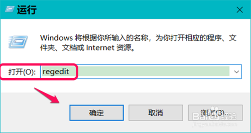 在【运行】对话框中输入:regedit 号令,点击确定或按下键盘上的回车键,打开注册表编纂器;