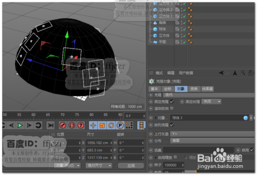 将半圆球埋没,可以看到这时很快速的搭建当作了一个灯光阵。当然若是其位置及数目不睬想,可以经由过程扭转半圆球,调整克隆分布数目来达到所要的结果。