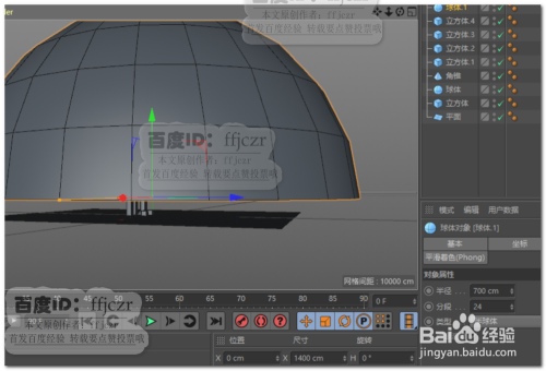 建立一个半圆球,其大小为刚好将作为地面的平面罩住,并离地面有必然的距离。可以想象当作这是为搭建灯光阵的架子。