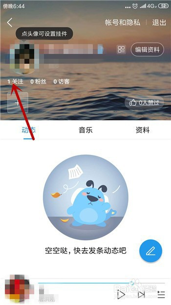 接着会打开酷狗音乐的小我本家儿页,在头像下方点击我们的【存眷数】。