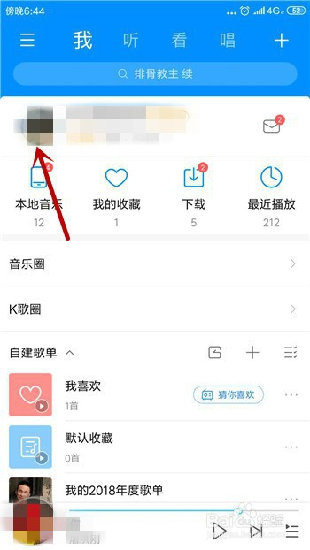 点击后会打开小我中间,看到我们的酷狗音乐头像并点击。