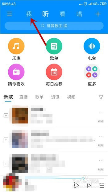 在酷狗音乐中点击顶部的【我】,如图所示。