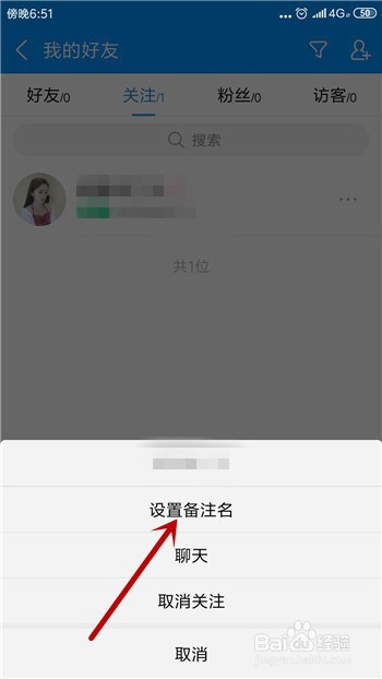 鄙人方会呈现几个选项,此中就有设置备注名,点击起头设置。