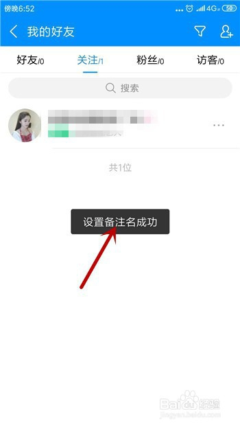 这样系统就会提醒我们设置备注名当作功,在存眷列表中也能看到备注名了。