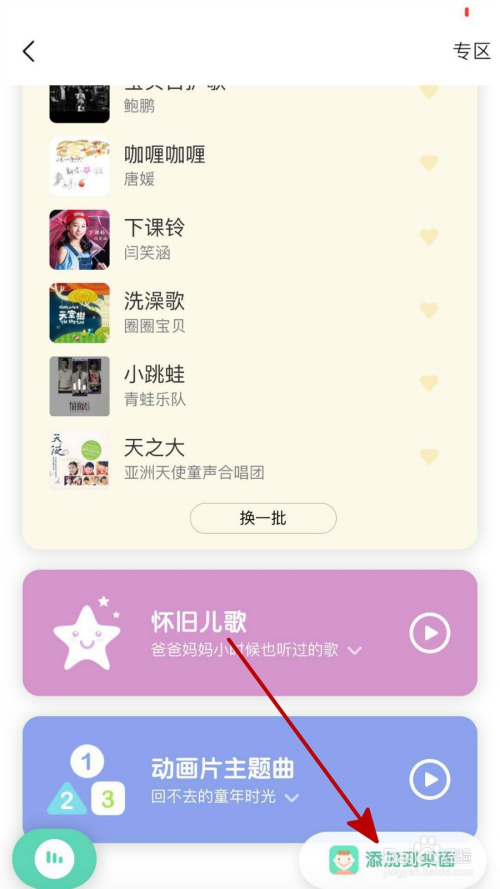 然后期待几秒钟点击起头,就会显示出适合宝宝的歌曲和故事,如下图