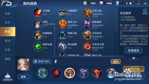 到了前中期,我们的装备反甲是很主要的,可以增添防御,并且还可以反危险。