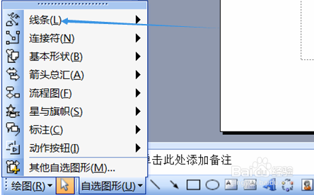 这个时辰弹出一个菜单,鼠标指针放在第一项线条上。